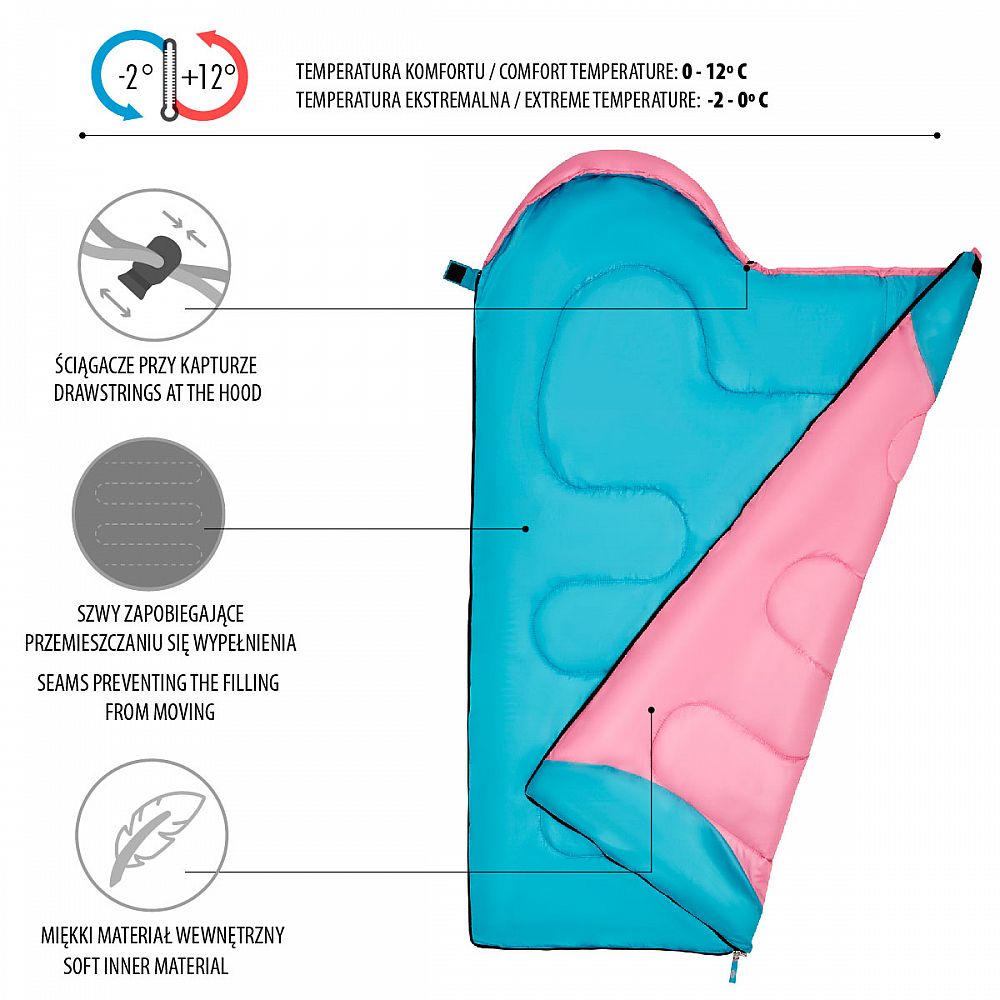 Spací pytel NILS Camp NC2007 Junior je ideální volbou pro všechny mladé turisty, kteří se během kempování chtějí vyspat pohodlně a v teple. Tento model byl navržen pro děti. Bude ideální pro výlety pod stan, tábory, přenocování v přírodě nebo rodinné kempování.