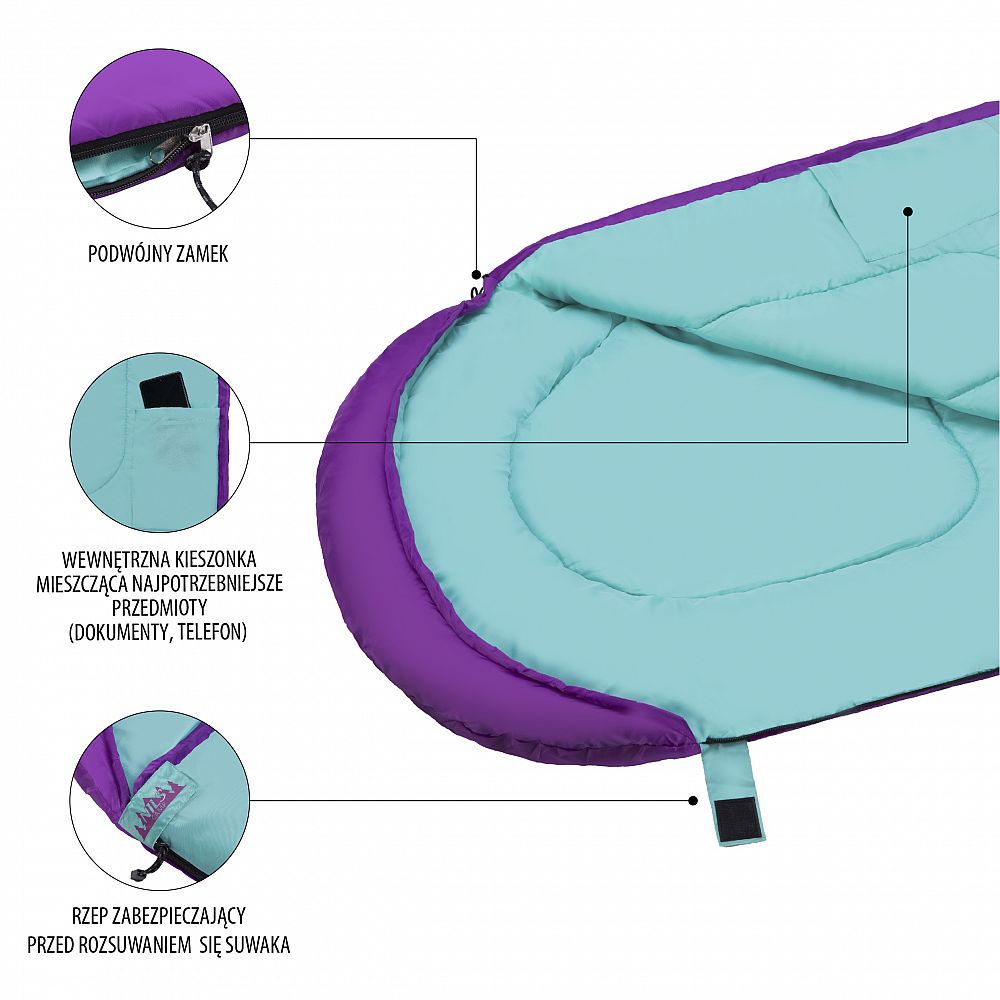 Popis: Spací pytel NILS Camp NC2008 fialový/tyrkysový
