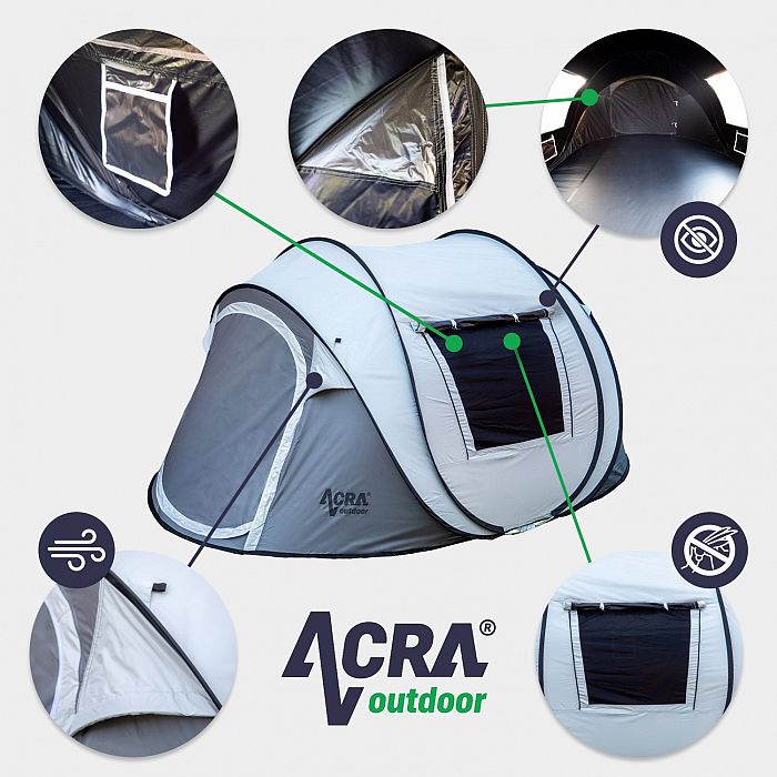 Acra Outdoor ST31 samorozkládací stan pro 2-3 osoby/2seconds - stříbrný se zatmavením
