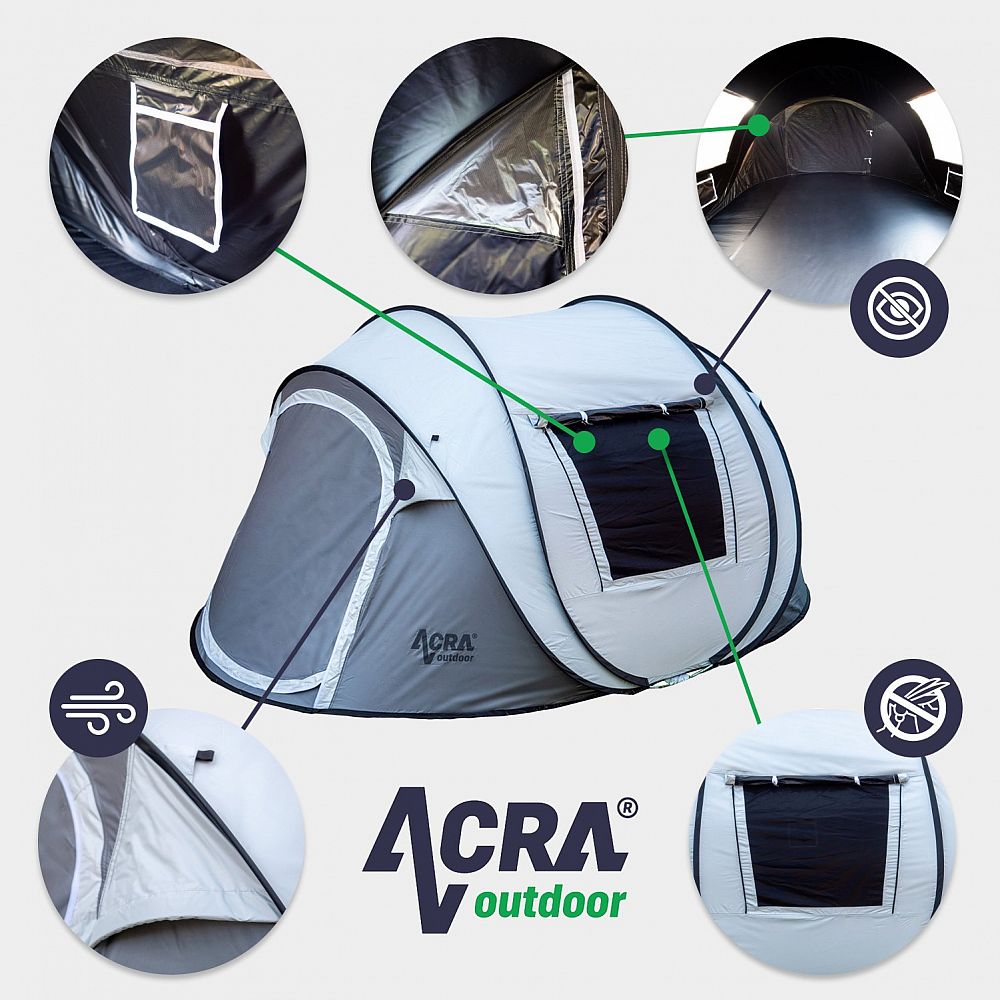 Hledáte stan, který vám zajistí klidný a nerušený spánek i v těch nejsvětlejších ranních hodinách? Pak je Acra Outdoor ST31 tou pravou volbou! Tento samorozkládací stan s inovativním systémem 2 Seconds vám umožní postavit stan za pouhé 2 minuty, bez potřeby složitého skládání tyčí.