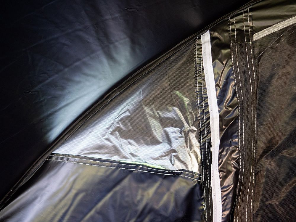 - Vnitřní černé zastínění: Černá barva vnitřního stanu minimalizuje pronikání světla a zajišťuje tak nerušený spánek i v brzkých ranních hodinách.