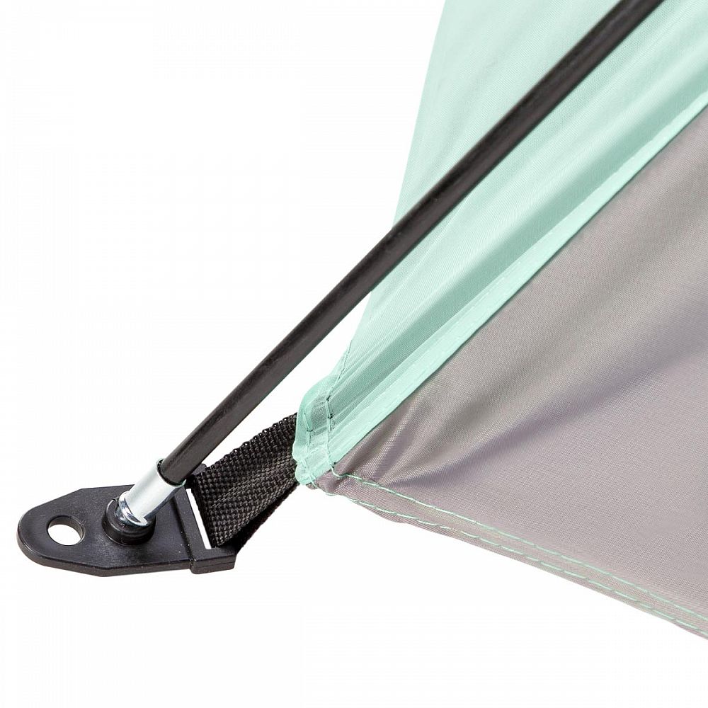 Stan je dodáván složený v tašce opatřené uchem pro snadné přenášení. Po vytažení z tašky se stan postaví za pomoci tří sklo-laminátových tyčí, které se provléknou tunely na polyesterovém tropicu. Podlaha o rozměrech 105 x 210 cm a výška 110 cm umožňují úkryt před sluncem jak dětem, tak rodičům. Použitý materiál odolá i malé, dešťové přeháňce.