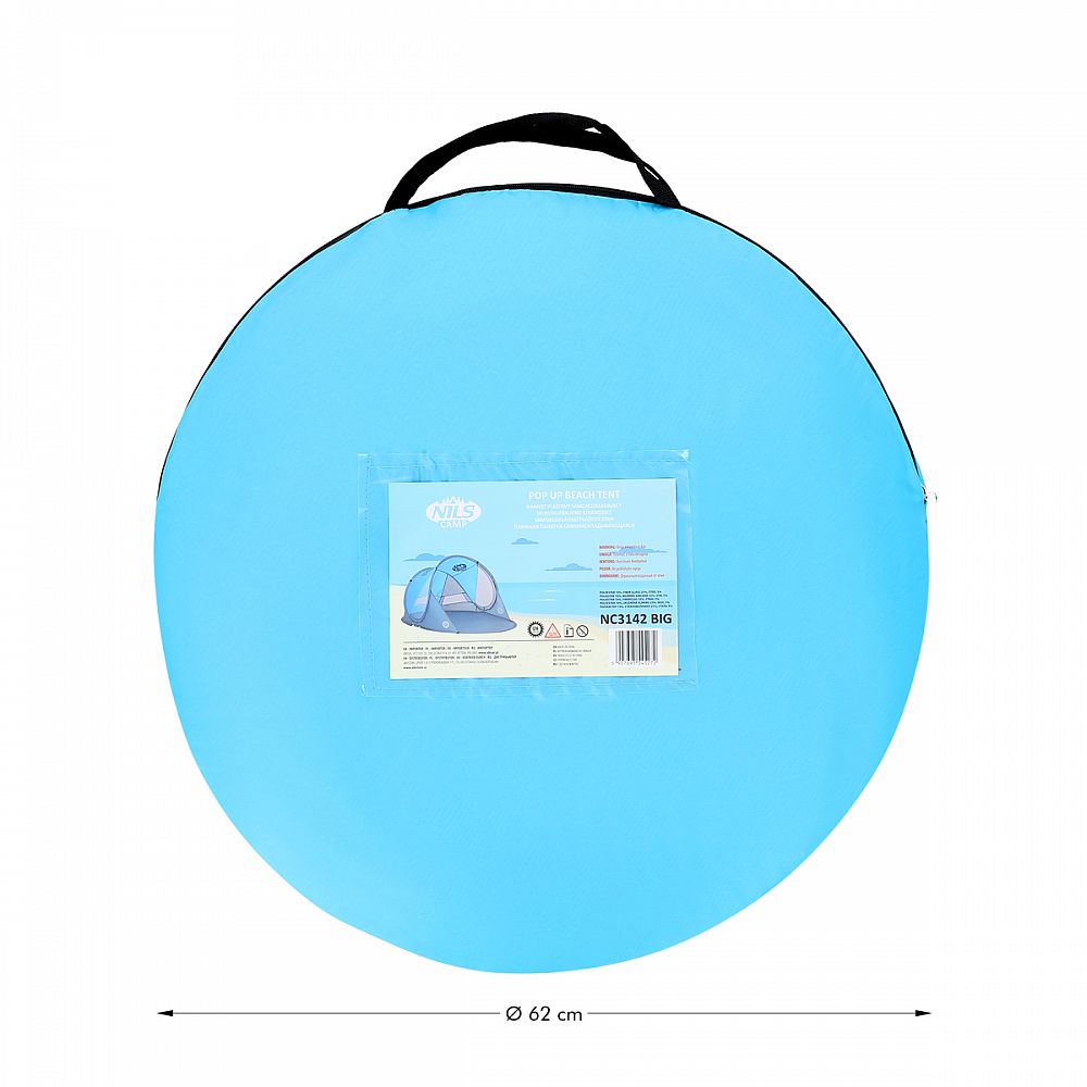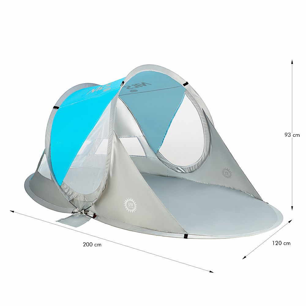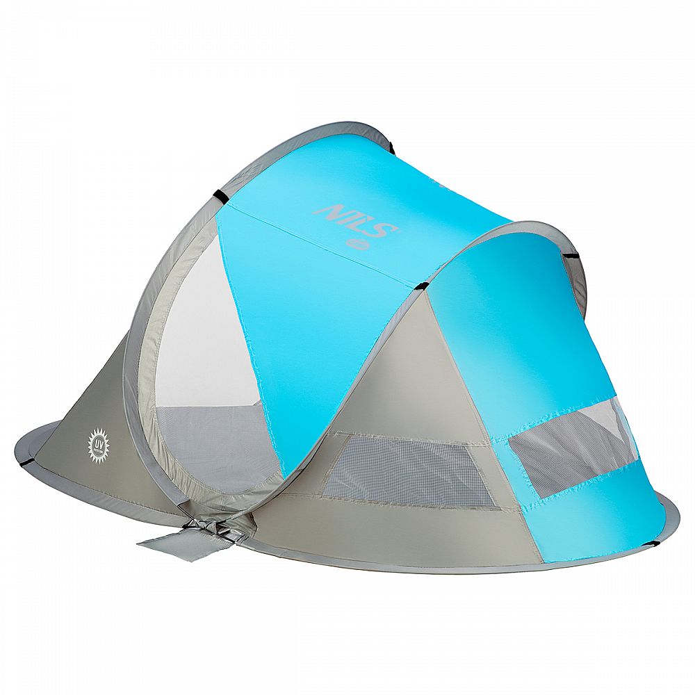 Popis: Samorozkládací plážový stan NILS Camp NC3143 BIG modrý