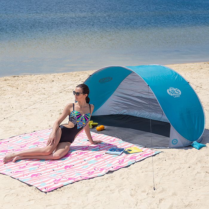 Popis: Samorozkládací plážový stan NILS Camp NC3174 modrý