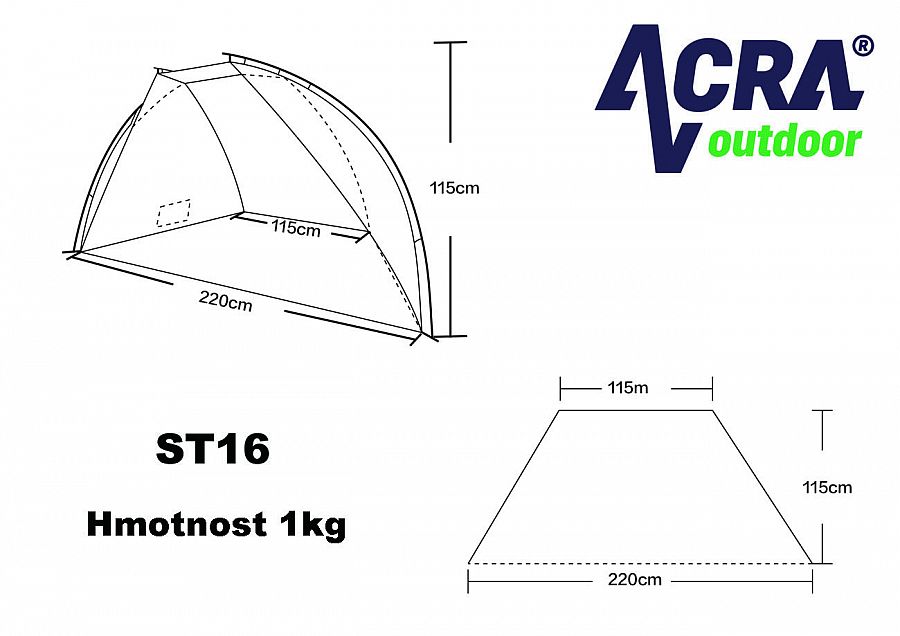 Plážový stan - zástěna 220 x 115 x 120cm- má otevřenou čelní stěnu, která umožňuje pohodlné použití minimálně 3 osobám.