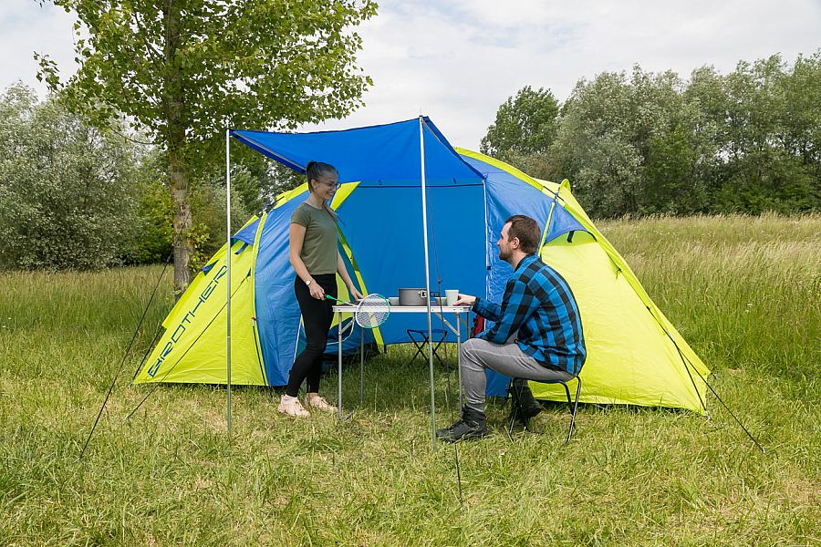Rodinný stan vhodný pro příležitostné kempování. Předsíňka spolu se slunečním přístřeškem vytvářejí dostatek vnitřního prostoru i v případě nepříznivého počasí. I při své velikosti je velmi skladný a s pomocí laminátových prutů postavení nezabere víc než 15 minut. Vhodný pro 4 osoby.