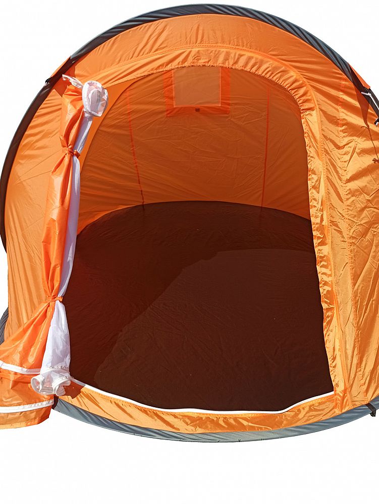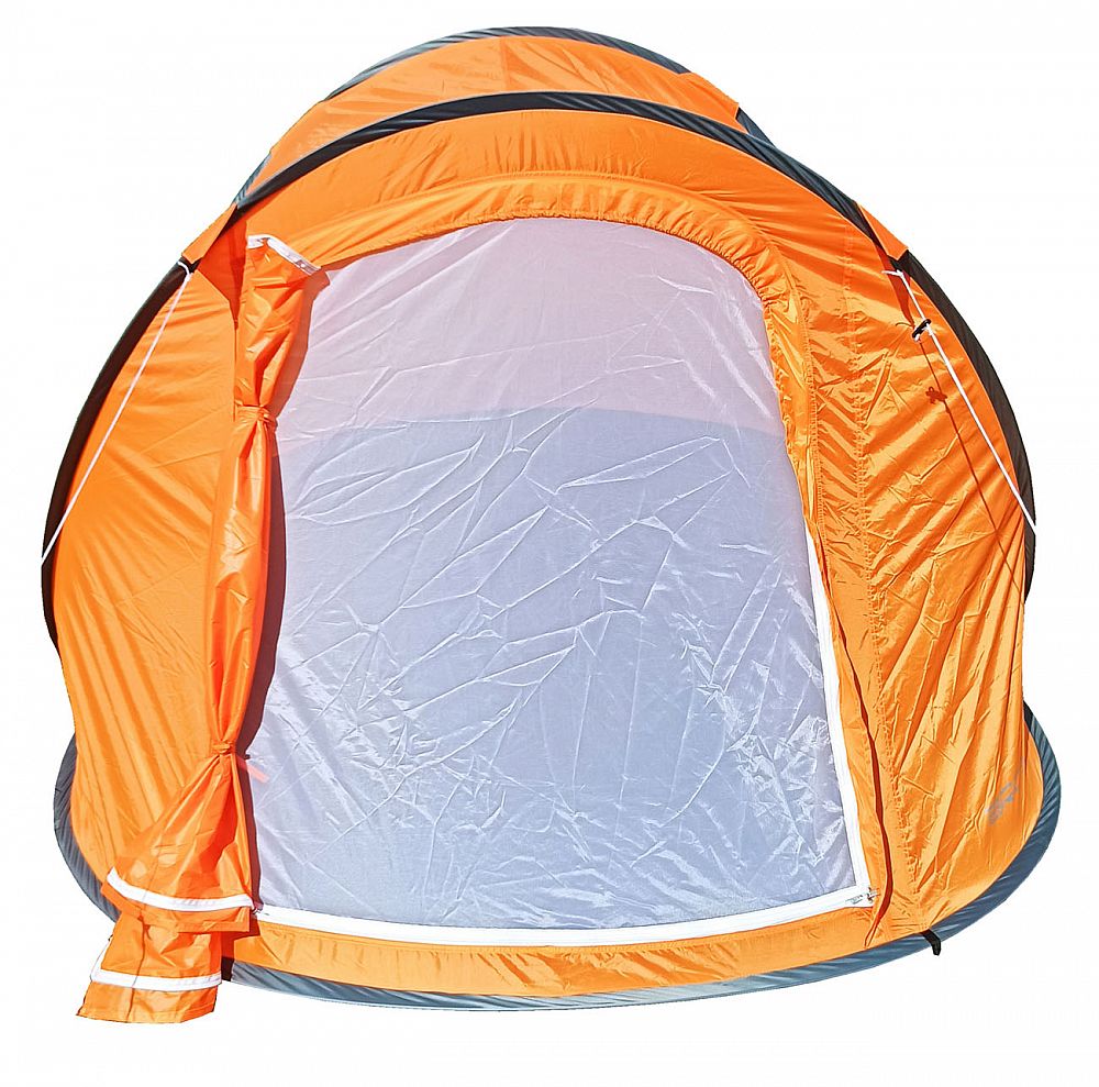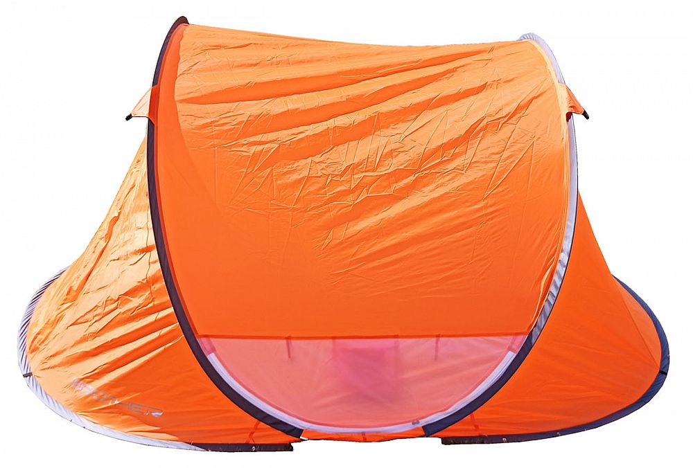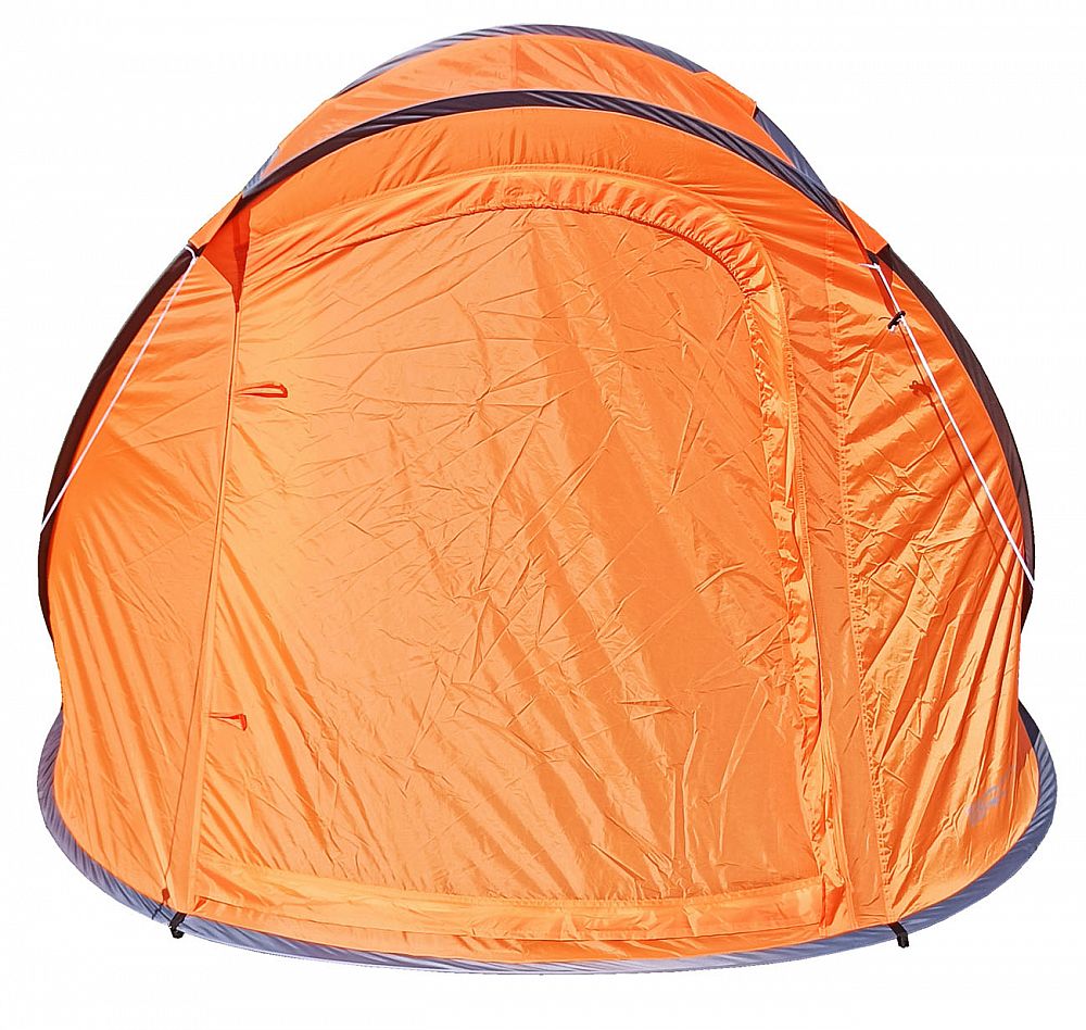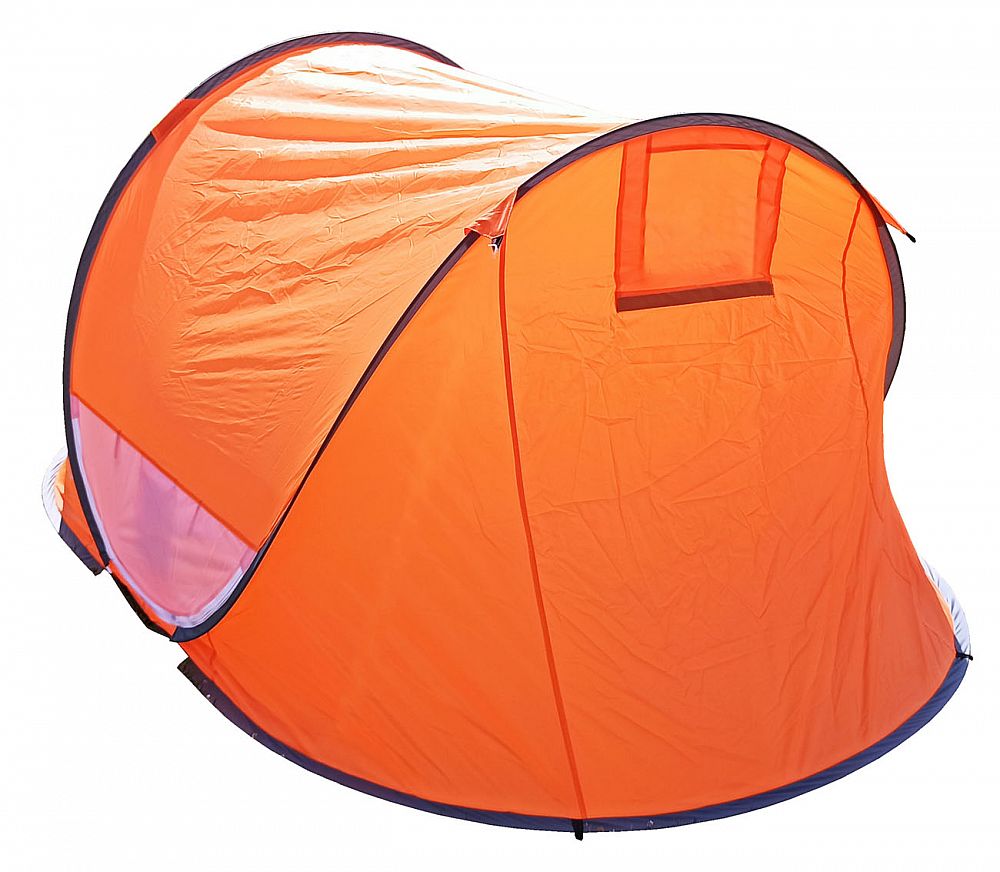 STAN SAMOSTAVĚCÍ pro 3 osoby. Jedná se o velmi skladný a jednoduše postavitelný stan. Navléknuté sklolaminátové pruty po vyndání z obalu stan kompletně postaví. Pak už jen stačí stan upevnit kolíky k zemi a dopnout plášť stanu kotvícími šňůrami kolem dokola.