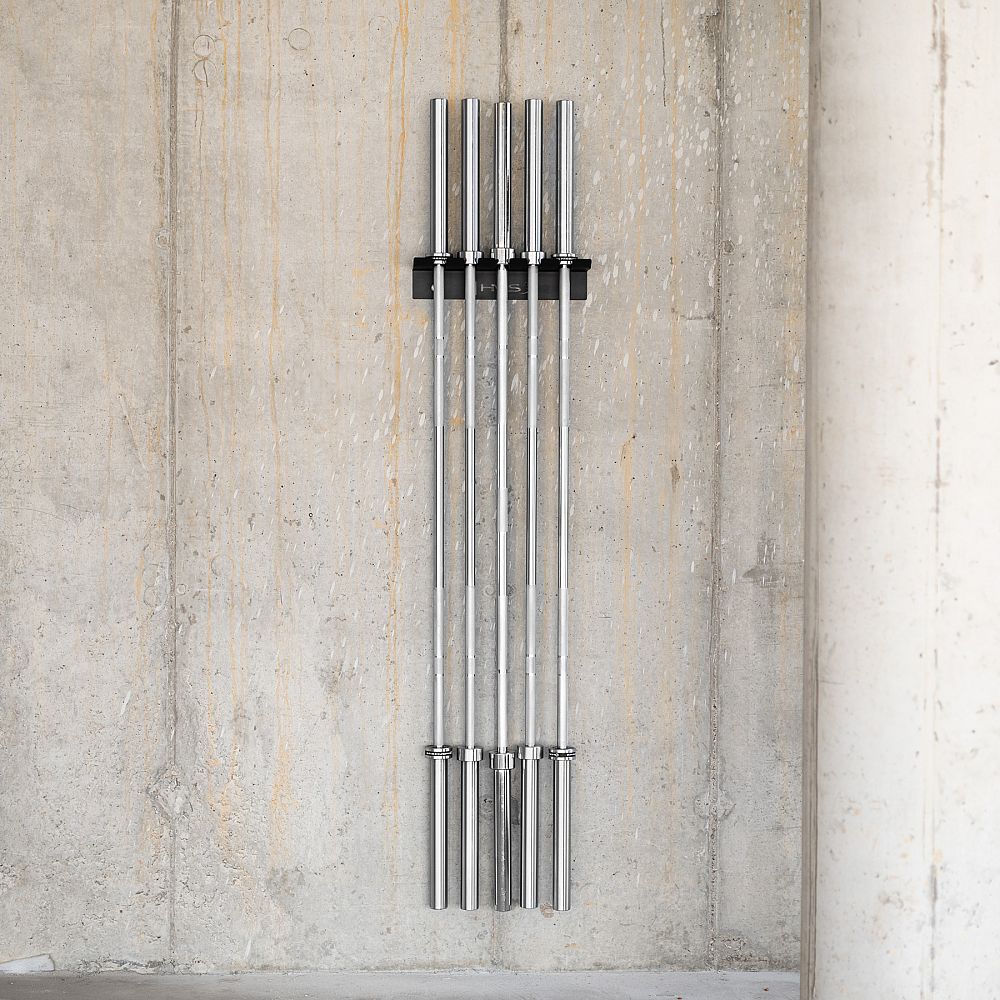 STR45 je praktický nástěnný držák, který umožňuje kompaktní a bezpečné uložení 5 os. Díky své konstrukci jsou osy umístěny vedle sebe, což pomáhá šetřit cenný prostor – což je obzvláště důležité v malých posilovnách a domácích tréninkových zónách.