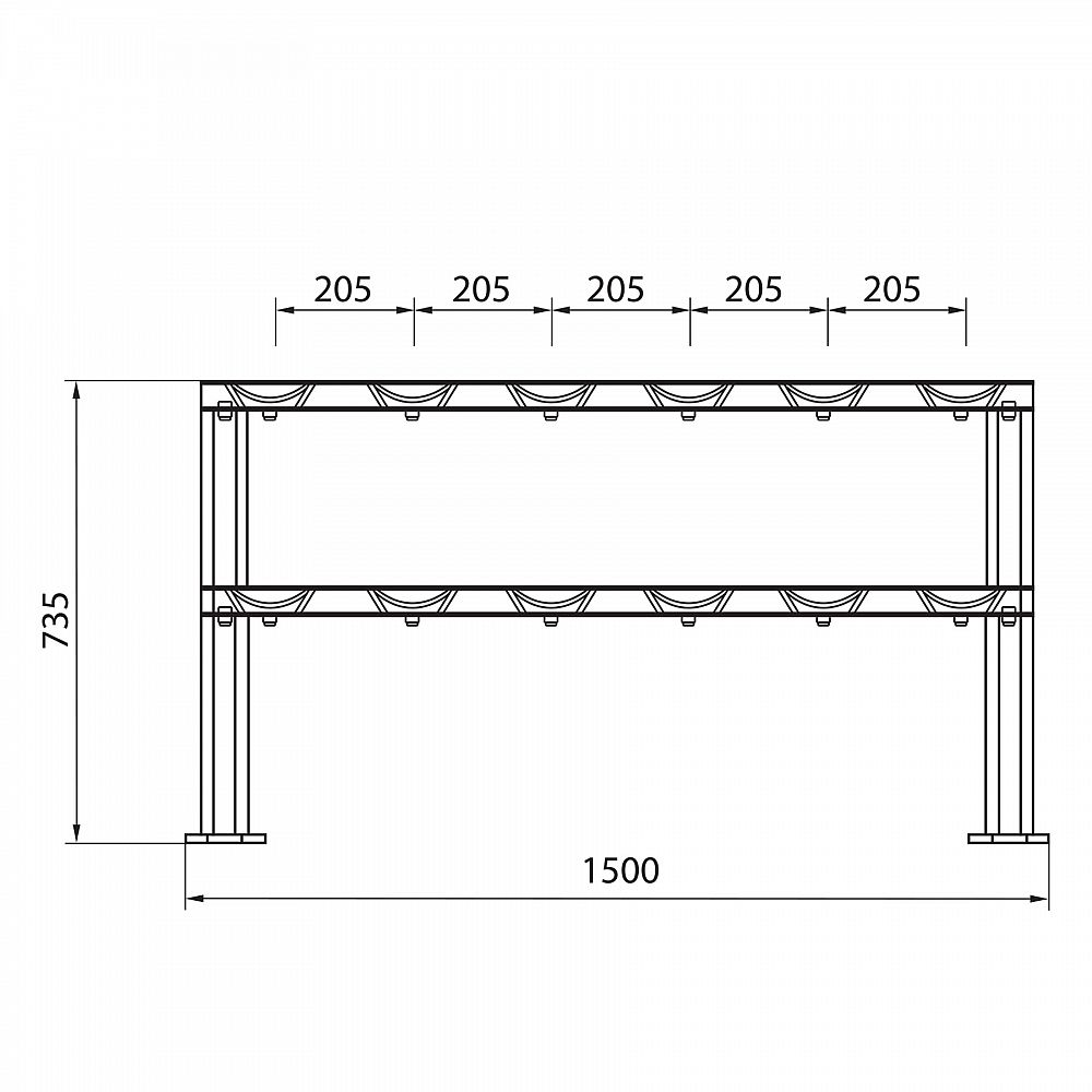 Stojan STR48 je vybaven dvěma prostornými policemi, které pojmou více než klasická řešení - až 12 činek. Mírně nakloněná plocha umožňuje pohodlné uchopení činek, čímž se zamezuje nadměrnému kroucení zápěstí, což zvyšuje pohodlí a chrání klouby.