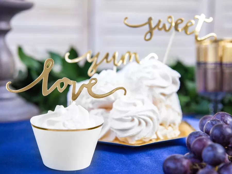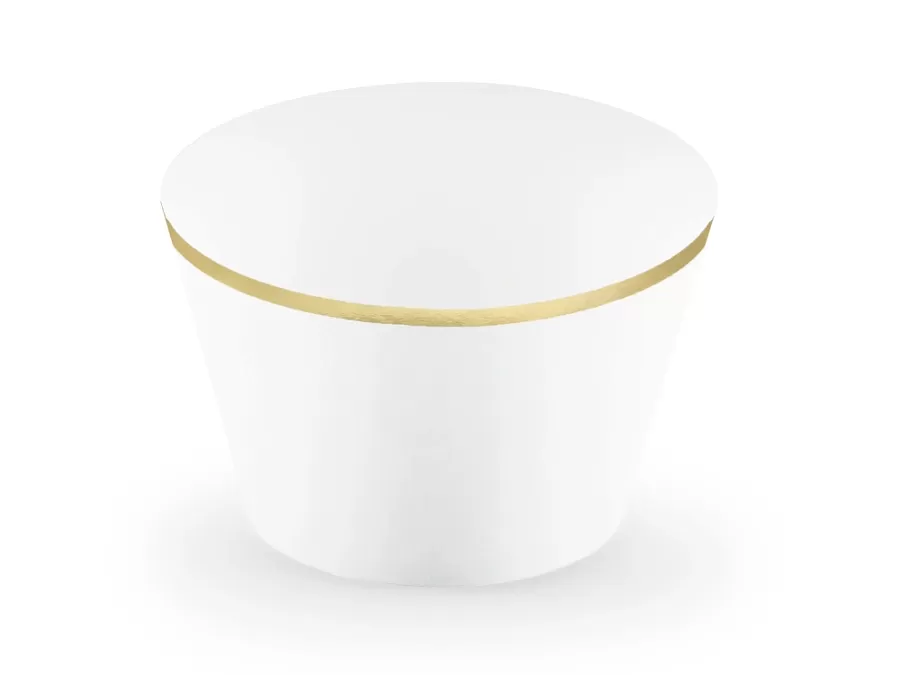 Košíček na cupcake bílé barvy se zlatým metalickým okrajem,