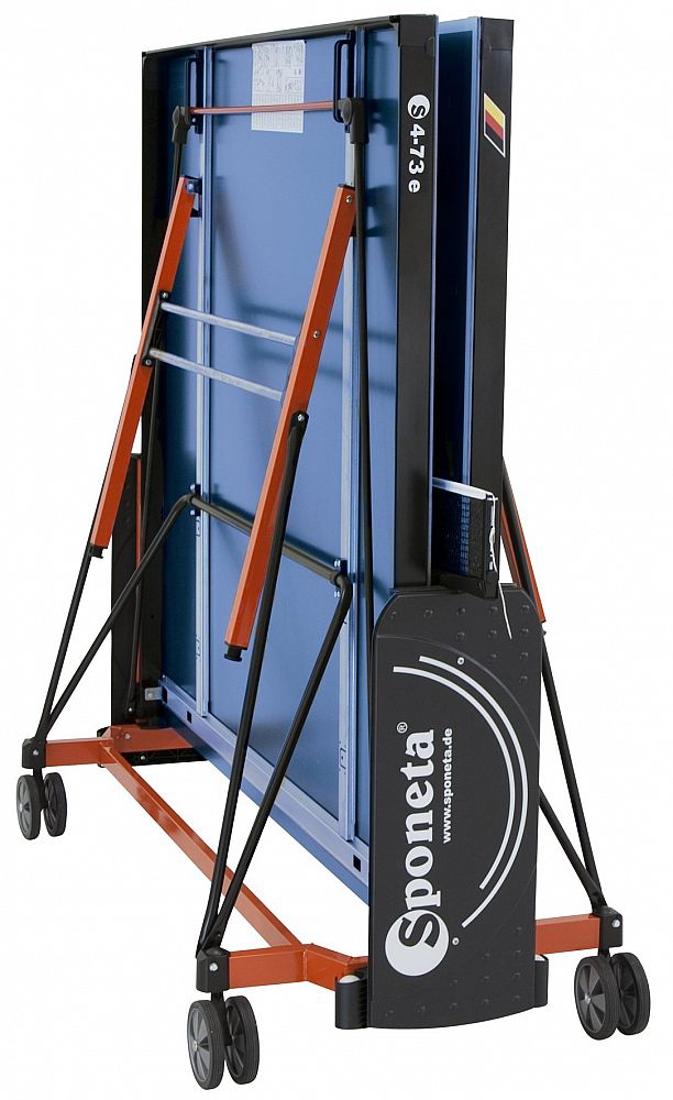 Stůl je možné složit, aniž by bylo nutné demontovat držák na síťku se síťkou. Výhodou tohoto modelu je možnost sklápění desek jen z jedné strany a není potřeba stůl obcházet nebo mít k sobě ještě další pomoc.