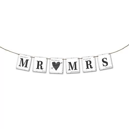 Banner MR & MRS skvělý jako závěsná dekorace na svatby či jiné akce. Je možné použít také do fotokoutku jako doplněk při focení.