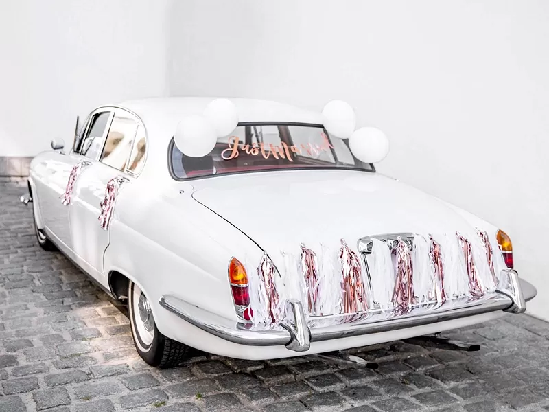 Popis: Svatební dekorační set na auto "Just married" rose gold