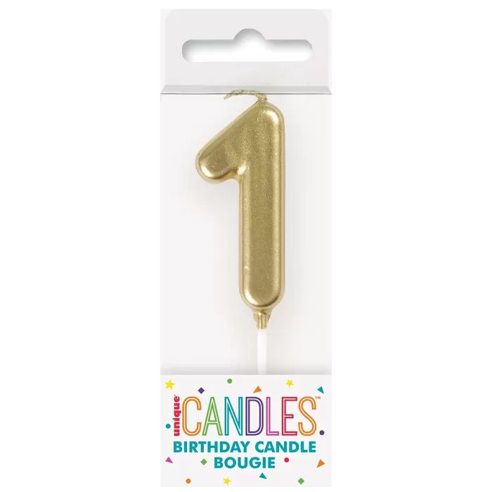 Svíčka ve tvaru číslice 1 ve zlaté barvě, 5cm velké.
