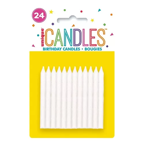 Svíčky dortové - bílé duhově třpytivé spirály, 24ct