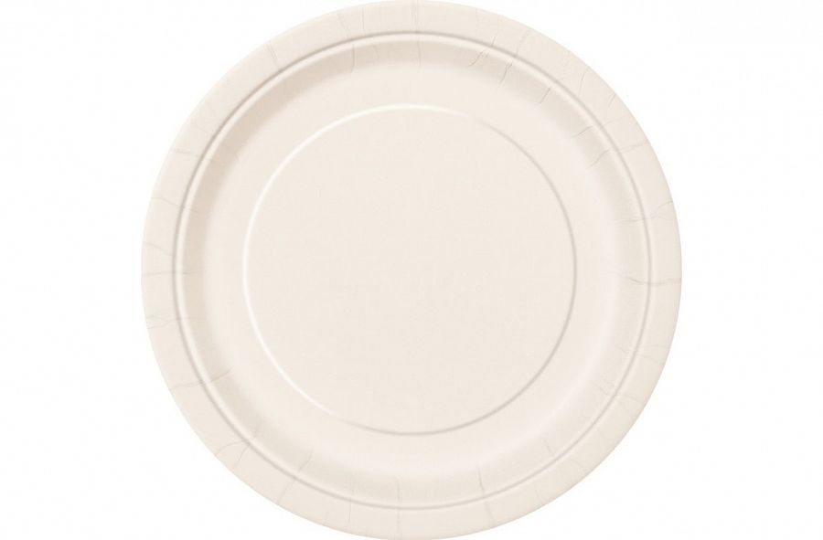 Sada dvaceti papírových talířků o průměru 18cm v barvě slonová kost.