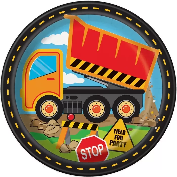 Zpestřete svému dítku oslavu narozenin pomocí těchto papírových talířků s motivem staveniště. V