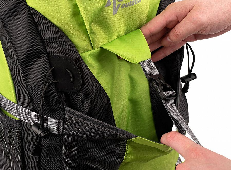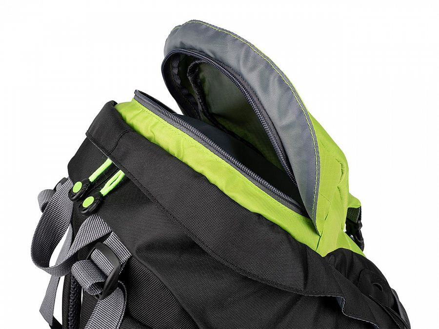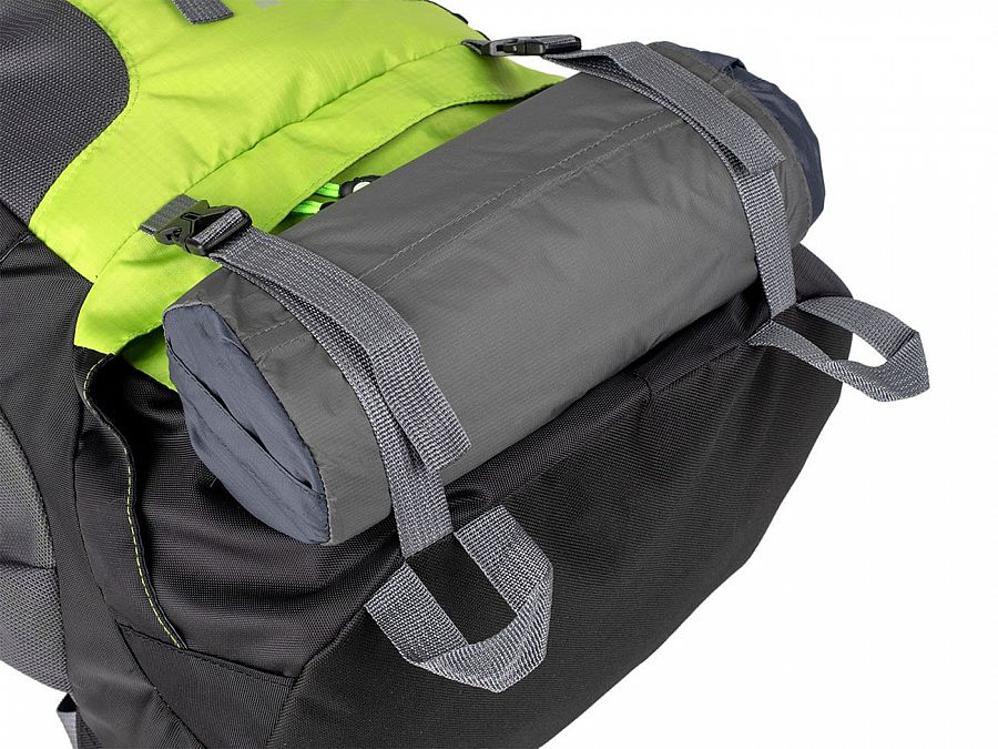 - k vybavení patří hrudní a bederní pás s maximálním obvodem 130 cm, 4 upínací pásky na různé předměty (trekové hole, helma...) a také dva pásky na spodní části batohu pro zmenšení objemu v případě jeho nevyužití. Na bahohu jsou také praktická poutka, po stranách má batoh výztuhy na udržení tvaru. Zpevněné dno a zadní část batohu je vyrobena z materiálu OXFORD 400D