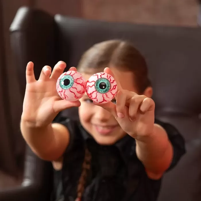 Sada halloweenských očních bulv svítících ve tmě je perfektním doplňkem pro strašidelné párty, Halloween, hororové večírky i tematické oslavy. Oční bulvy vytvářejí realistický a trochu děsivý efekt, když se rozsvítí v tmavém prostoru – připomínají děsivé oči, které vás sledují. Dekorace se snadno rozmístí po místnosti, na stole, na polici nebo venku mezi jinými dekoracemi a okamžitě přidají vaší výzdobě hrůzostrašný nádech. Díky svítícímu materiálu jsou bulvy viditelné i ve tmě, což vytváří autentickou halloweenskou atmosféru. Ideální pro rodinné oslavy, strašidelný foto koutek nebo jako originální doplněk výzdoby. Velikost jedné oční bulvy: 5 cmBalení: 4 ks - 2x zelené, 2x modré