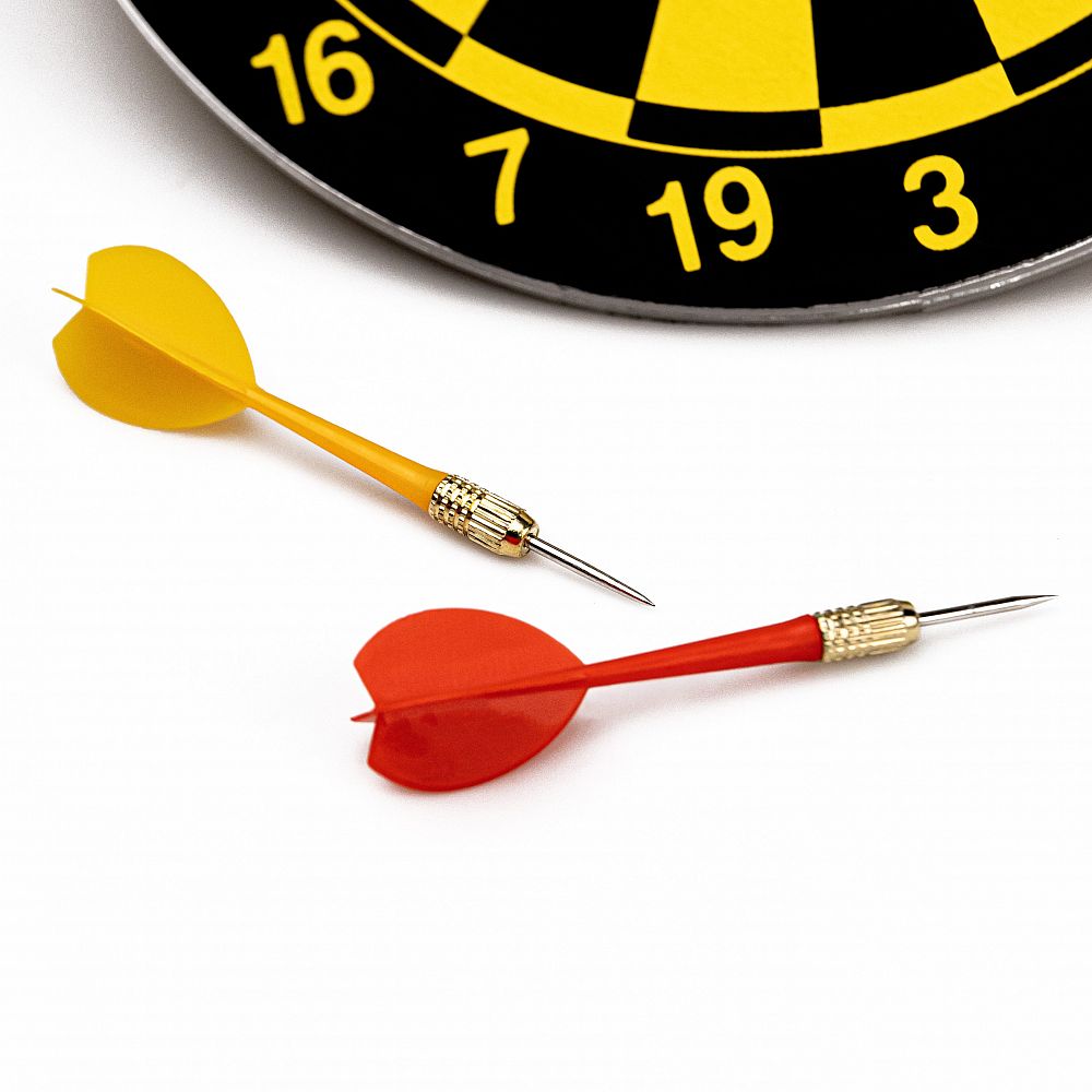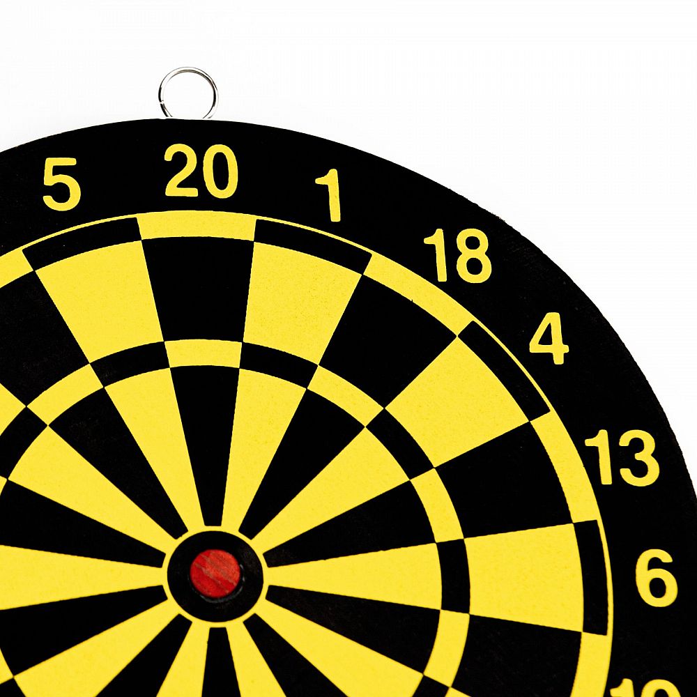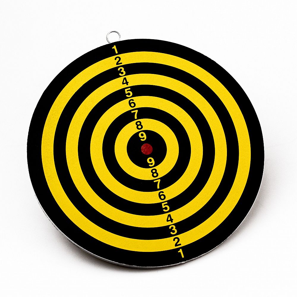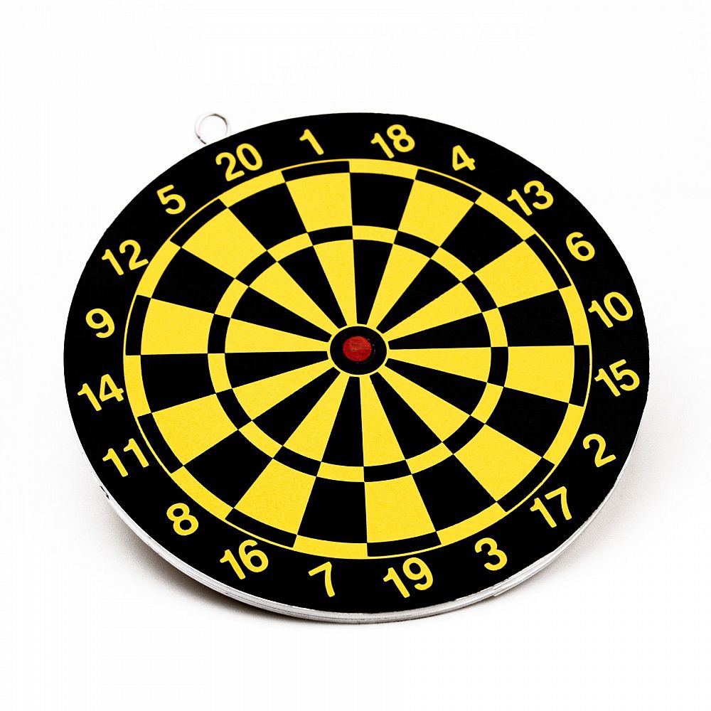 Design: Terč má klasické číselné rozvržení segmentů (1-20) v kontrastní černo-žluté barevné kombinaci, což zajišťuje dobrou viditelnost pro snadné zacílení.