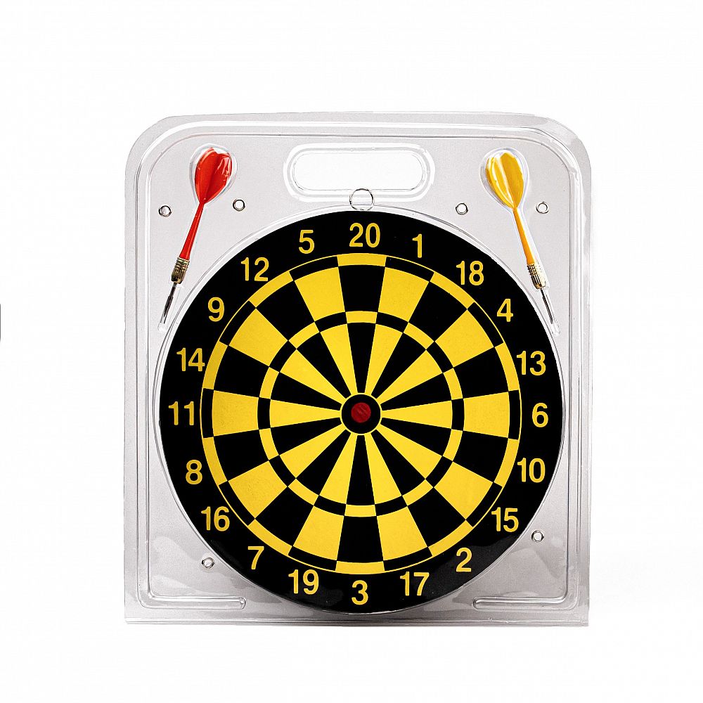 Balení: Celý set je balen v průhledném blistru, který chrání terč i šipky a zároveň je ideální pro vystavení.