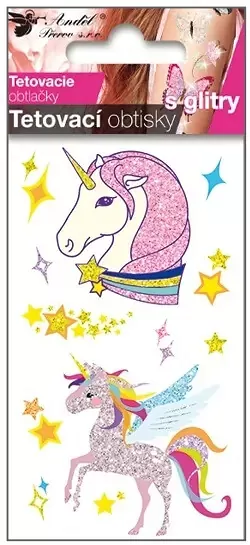 Popis: Dočasné tetování dětské - jednorožec s glitry