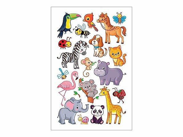 Dočasné tetování v motivu zvířátek. Jednoduchá forma zábavy ať už na oslavy v tomto motivu nebo jen tak pro každodenní nošení. Návod na aplikaci tetování: Vyberte si místo, kam chcete tetování umístit a vystřihněte si požadovaný obrázek z archu Odlepte ochrannou folii, která je na archu Přiložte tetování na požadované místo a navlhčete jej a přitiskněte a chvilku držte Odstraňte papírek a máte hotovo Tetování je nezávadné a můžete jej z pokožky odstranit dětským olejíčkem, mýdlem, nebo lihem