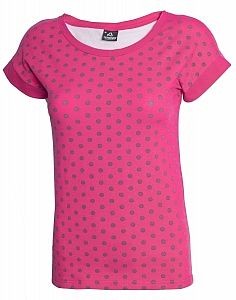 Dámské tričko s krátkým rukávem a s šedými puntíky. Kulatý výstřih a konec rukávu je lemovaný jednobarevnou látkou. Složení: 95% Bavlna, 5% ElastodienHodnocení produktu zákazníky Dámské triko ADA