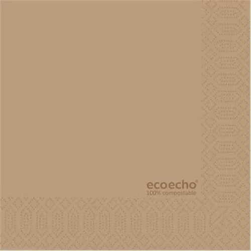 Vyberte si ubrousky šetrné k přírodě, budoucnost je v našich rukou. Výrobky řady ecoecho® Vám umožní kráčet kupředu v oblasti udržitelnosti životního prostředí, kvality a stylu. Ubrousky jsou kompostovatelné, neobsahují žádné toxické látky a mají menší dopad na životní prostředí, než většina ostatních "ekologických" ubrousků. Odpovídají předpisům pro styk s potravinami a mají původní, přirozený vzhled, který odpovídá jejich ekologicky uvědomělému profilu. Jsou velice flexibilní a poskytují příjemný a hebký pocit na dotek.