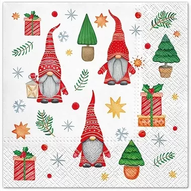 Třívrstvé papírové ubrousky s motivem vánočních skřítků.