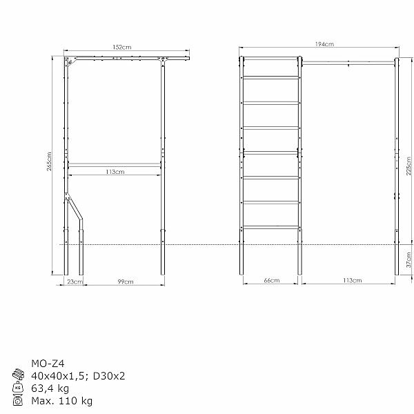 Popis: Venkovní žebřiny a hrazda MARBO MO-Z4