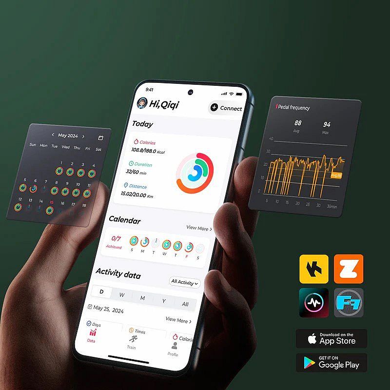 Merach, Kinomap, Zwift, Apple Health, Google Fit, Fanton Fite (od Merach)