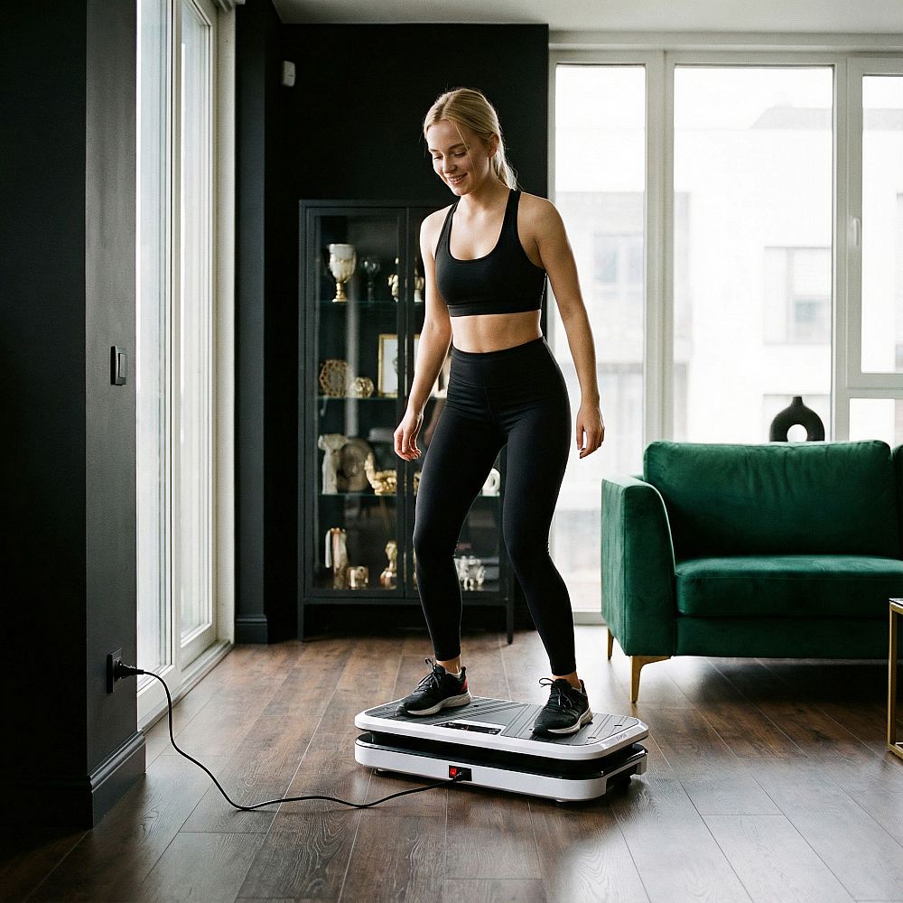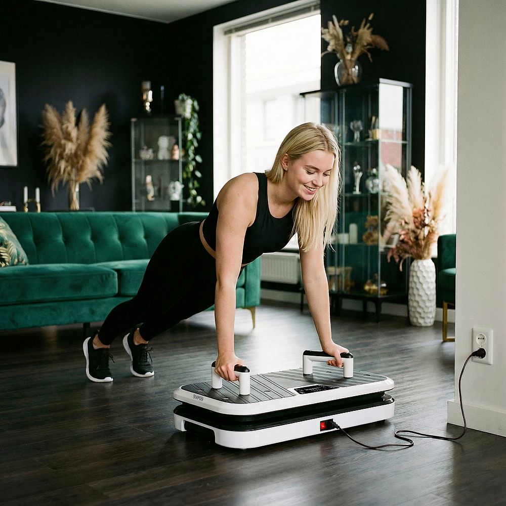 Model SVP09 pracuje v ose nahoru–dolů, čímž vytváří intenzivní vibrace aktivující i hluboké svalové skupiny. Intenzitu lze nastavit v rozsahu 1–120 úrovní podle aktuální kondice a cíle tréninku. Amplituda vibrací 1–2,8 cm zvyšuje účinnost cvičení a podporuje lepší zapojení svalstva.