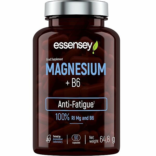 Essensey Magnesium + B6 od výrobce Trec Nutrition obsahuje komplex 4 forem hořčíku (oxid hořečnatý, hořečnaté soli kyseliny citrónové, laktát hořečnatý a uhličitan hořečnatý), který je navíc doplněn o vitamín B6 pro podporu správného vstřebávání hořčíku.