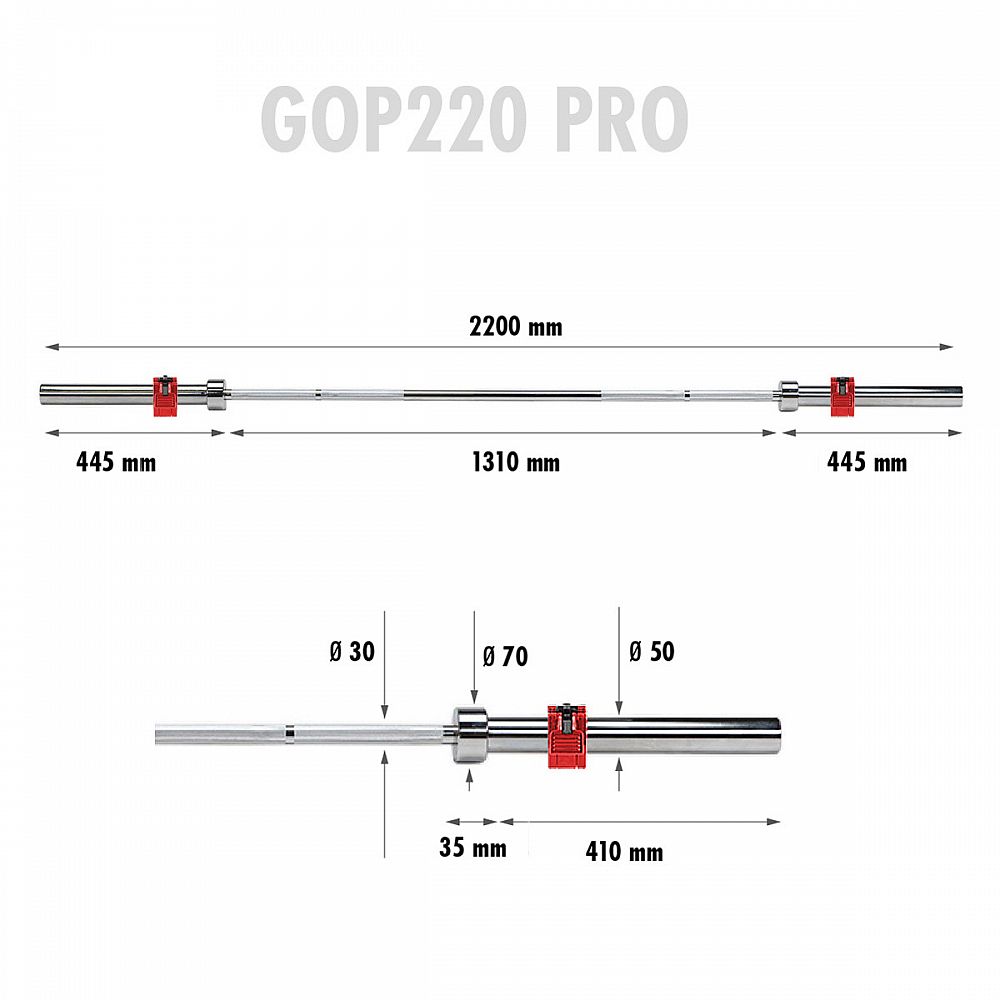 Popis: Olympijská obouruční osa HMS GOP220 Pro 220 cm x 50 mm