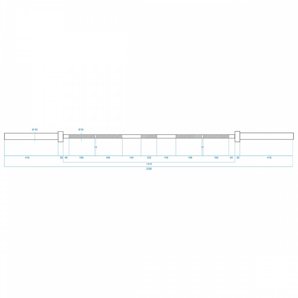 Průměr úchopové části je 30 mm a zajišťuje vysokou odolnost a pohodlí během tréninku. Použitý proces chromování hřídele je zárukou zachování jejího vzhledu po dlouhou dobu jejího používání a také je nejlepší ochranou proti korozi.