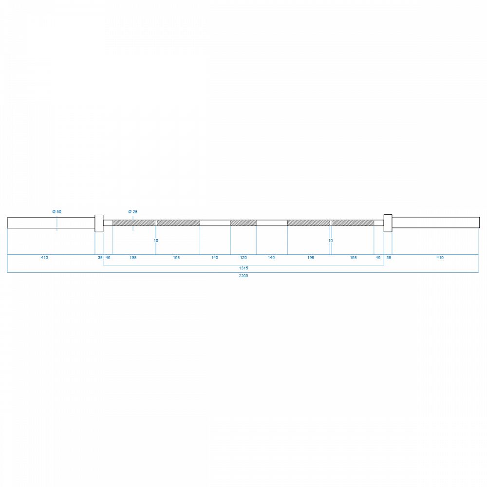 Průměr úchopové části je 28 mm a zajišťuje vysokou odolnost a pohodlí během tréninku. Použitý proces chromování hřídele je zárukou zachování jejího vzhledu po dlouhou dobu jejího používání a také je nejlepší ochranou proti korozi.